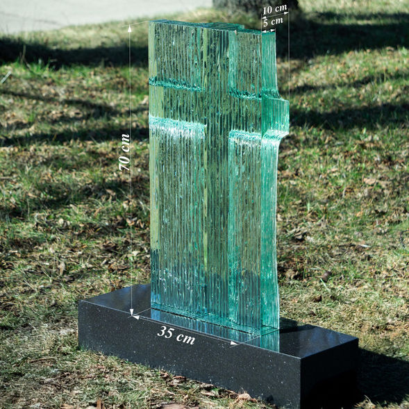 Neliela izmēra, rokām darināts stikla piemineklis ar krusta bareljefu vienā pusē. Vienā pusē tam ir cilnis krusta formā, bet otra puse ir taisna. Piemineklis var būt gan kā papildinājums jau esošam piemineklim, vai arī kalpot kā pilnvērtīgs piemineklis ar uzrakstiem uz gludās puses. Uz šāda pieminekļa vislabāk izskatīsies nerūsējošā tērauda uzraksts.