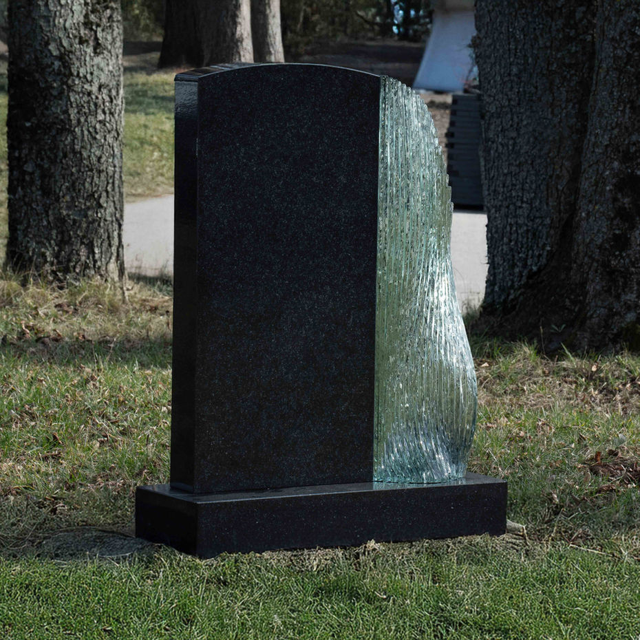 This is a glass and granite combination monument that combines the classics of grave culture with an aesthetic ray of light. The vertical stone is perfectly suited for placing inscriptions, but the handmade, sparkling glass part emphasises the uniqueness of this monument.